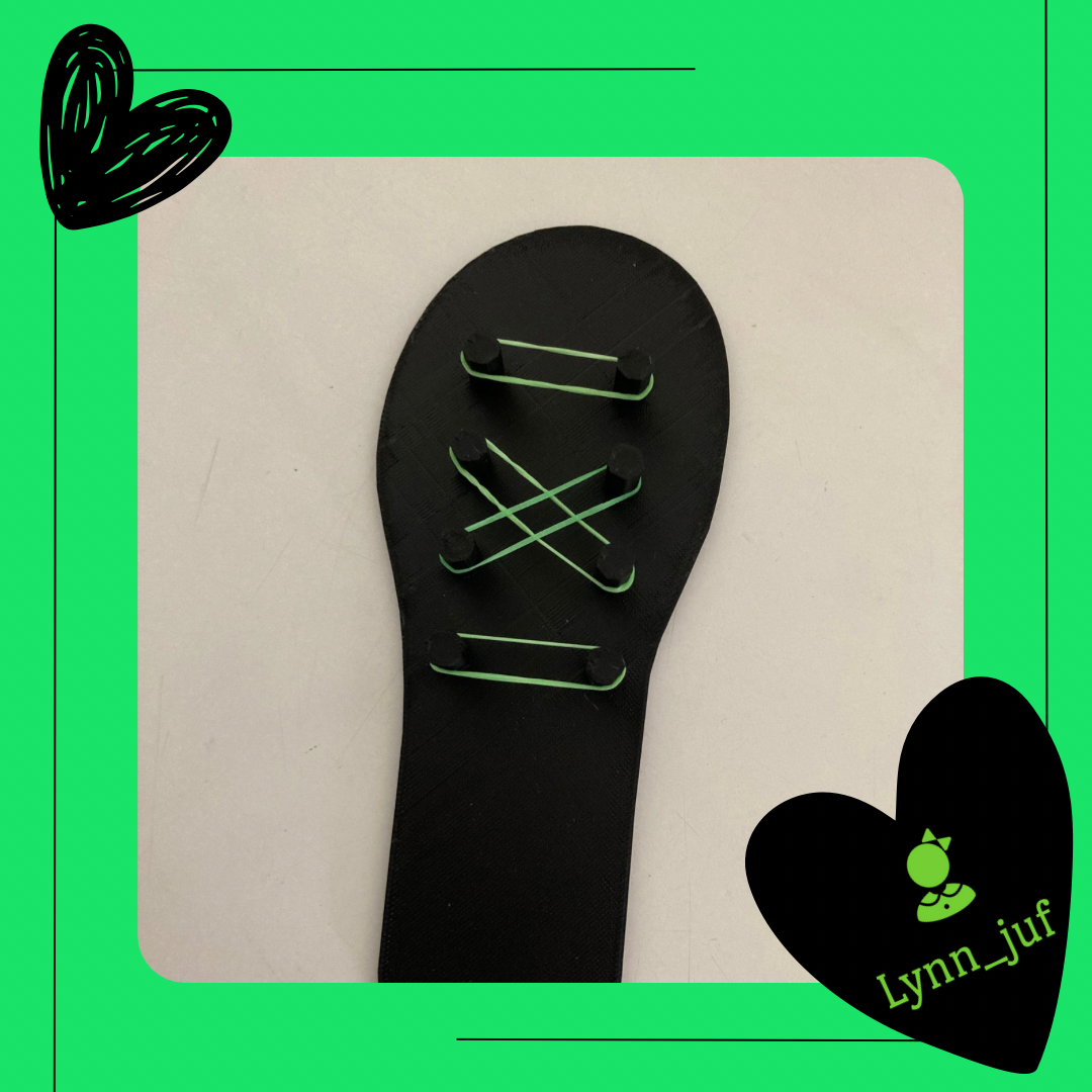 schoen 18 cm lang, om raamfiguren mee te oefenen (veters: loombandjes zijn perfecte formaat)